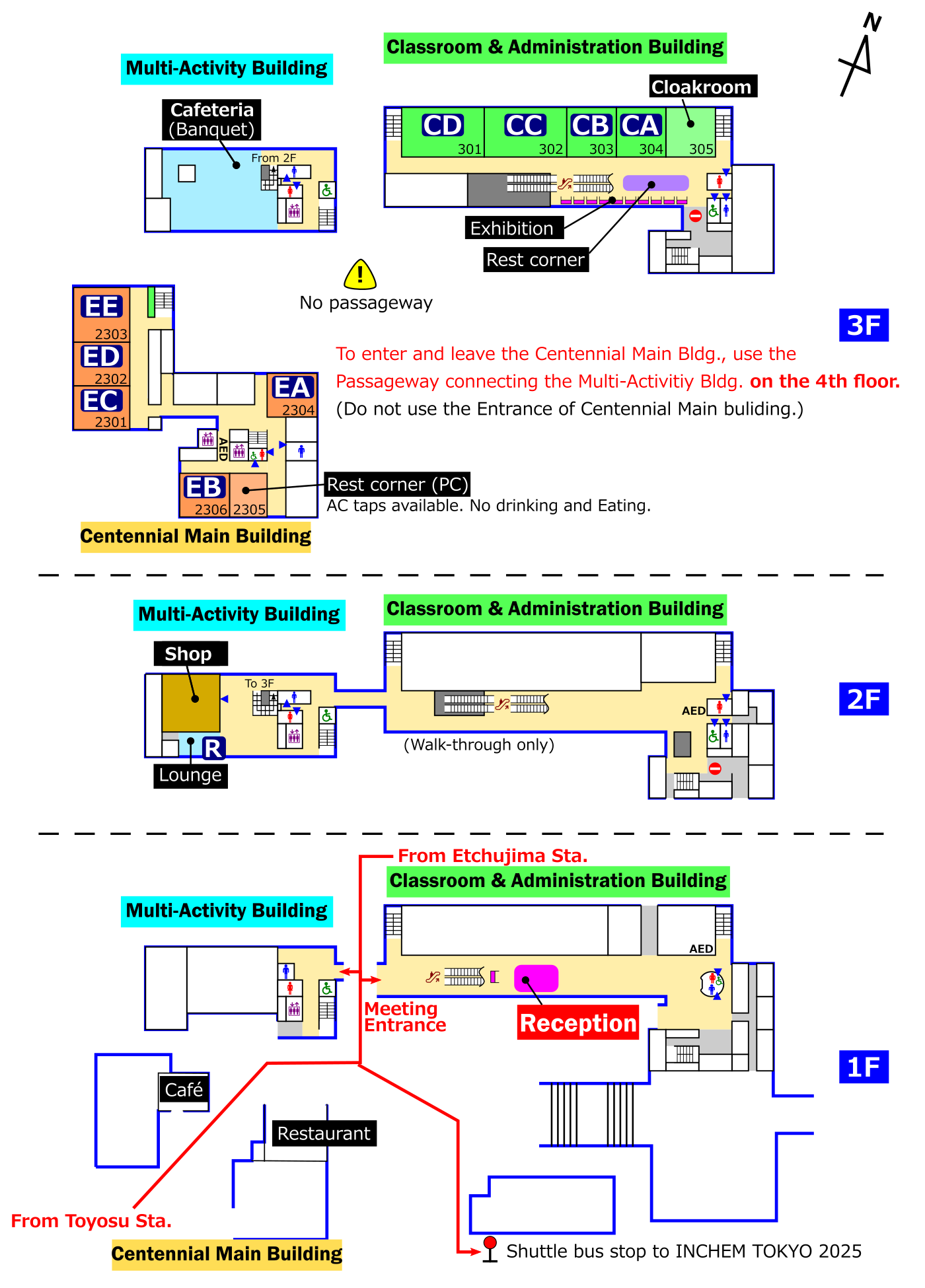 | 3 | Halls EA - EE, Rest Corner (for PC) | Cafeteria, Banquet | Halls CA - CD, Cloakroom, Exhibition | ||