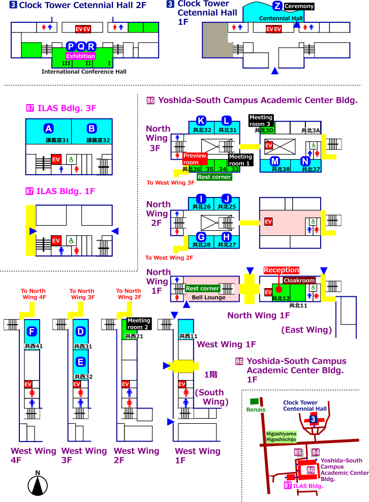 - The Cafeterias in the Yoshida-South Campus and the Main Campus will be closed during the Meeting.
