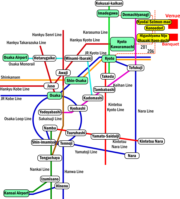 - Osaka Monorail and Hankyu Railway (About 70 min. to Hankyu Kyoto Kawaramachi Station)