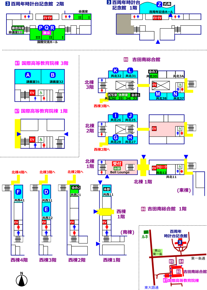 現地会場は 京都大学 吉田キャンパス(吉田南構内・本部構内) (〒606-8501 京都府京都市左京区吉田本町) です。[大学のアクセス情報ページ]