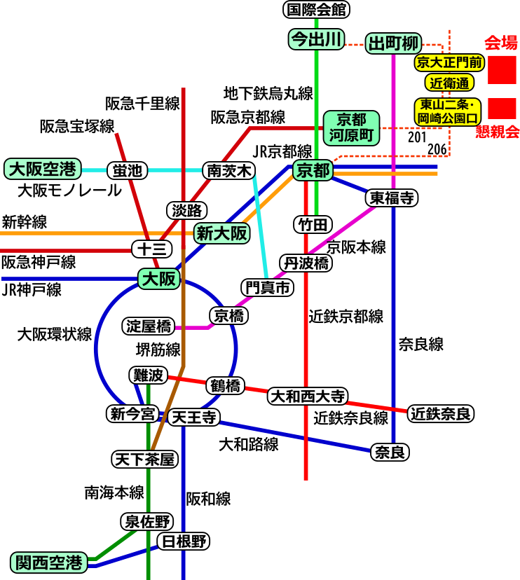 懇親会の会場は みやこメッセ (〒606-8343 京都府京都市左京区岡崎) です。