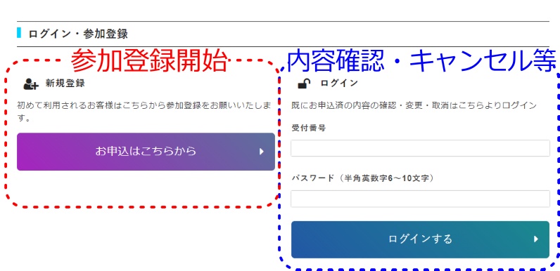 (申込内容確認・訂正・キャンセルの場合は「ログインする」をクリックしてください。)